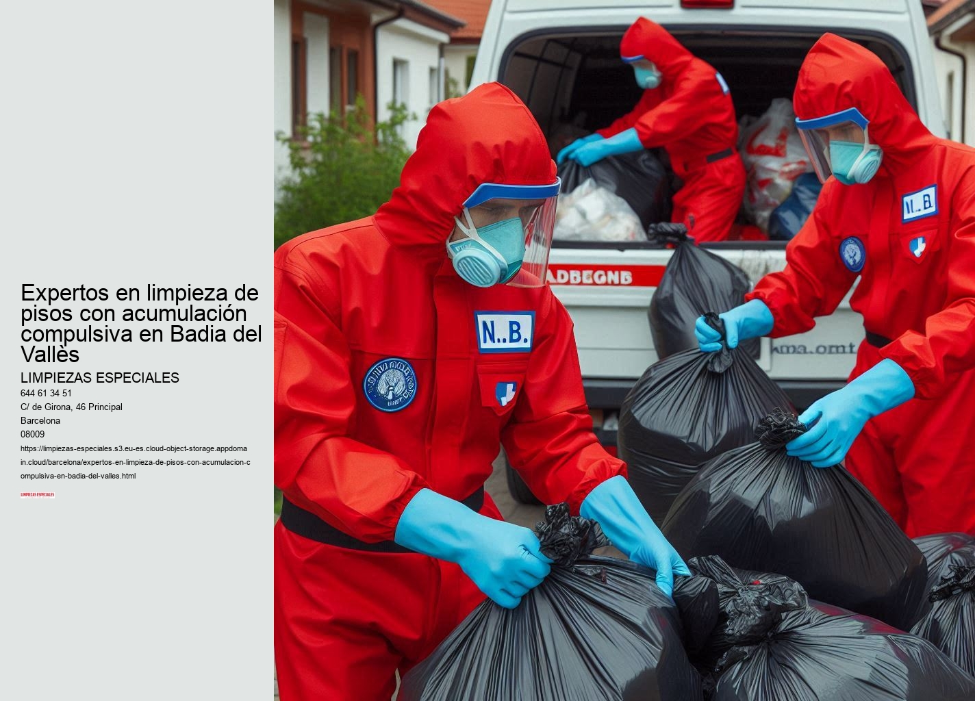 La limpieza profesional es crucial para asegurar la salud y el bienestar de las personas afectadas por el síndrome de Diógenes. Empresa experta en Expertos en limpieza de pisos con acumulación compulsiva en Badia del Vallès Garantizado 100% Actuar rápidamente es esencial para restaurar la habitabilidad del espacio y mejorar la calidad de vida de todos los involucrados.