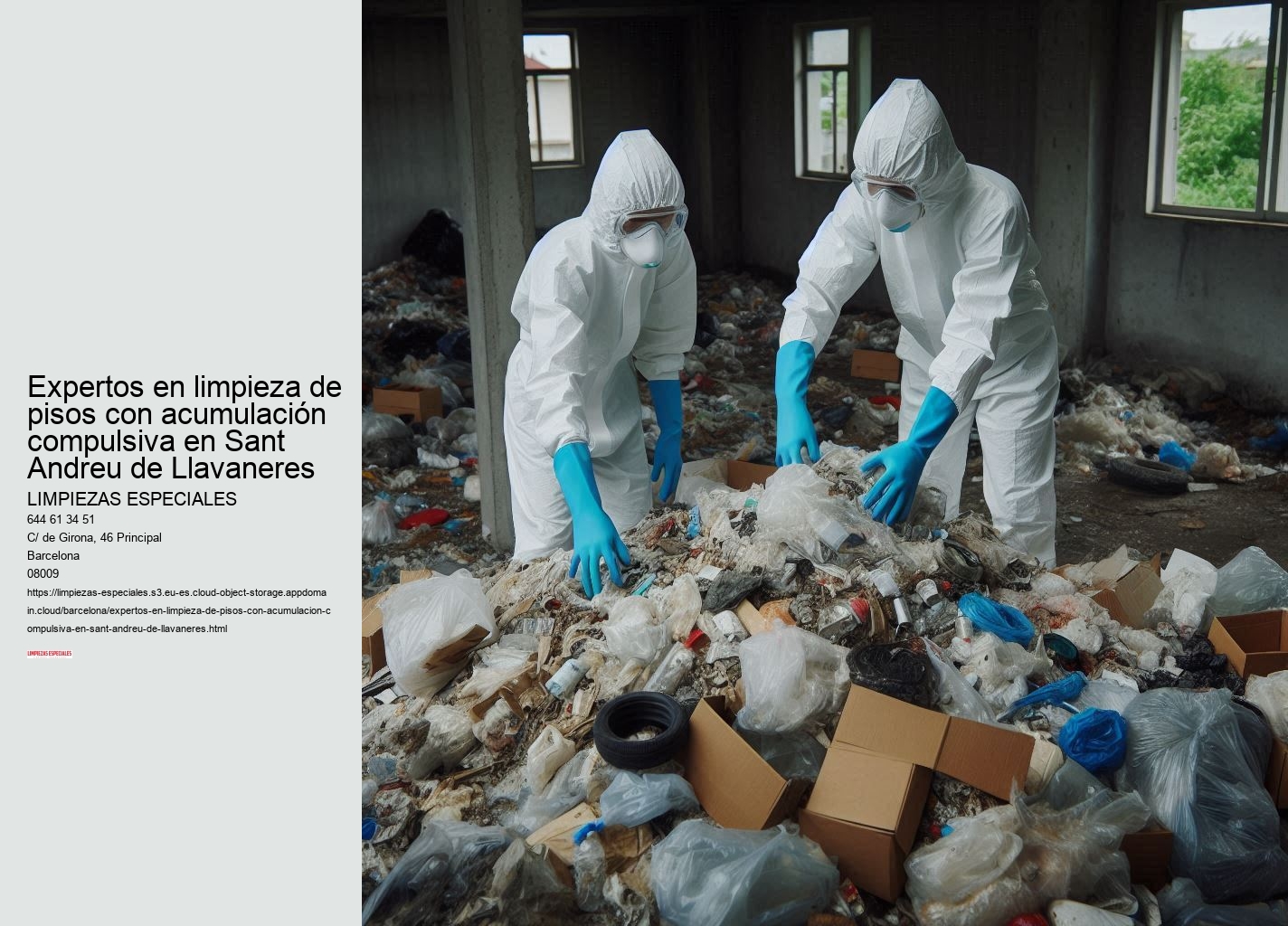 Invitamos a los lectores a contactar con Limpiezas Especiales Sant Andreu de Llavaneres para obtener ayuda y un presupuesto personalizado. Empresa experta en Expertos en limpieza de pisos con acumulación compulsiva en Sant Andreu de Llavaneres Garantizado 100% No demores más en recuperar la habitabilidad y seguridad de tu hogar.