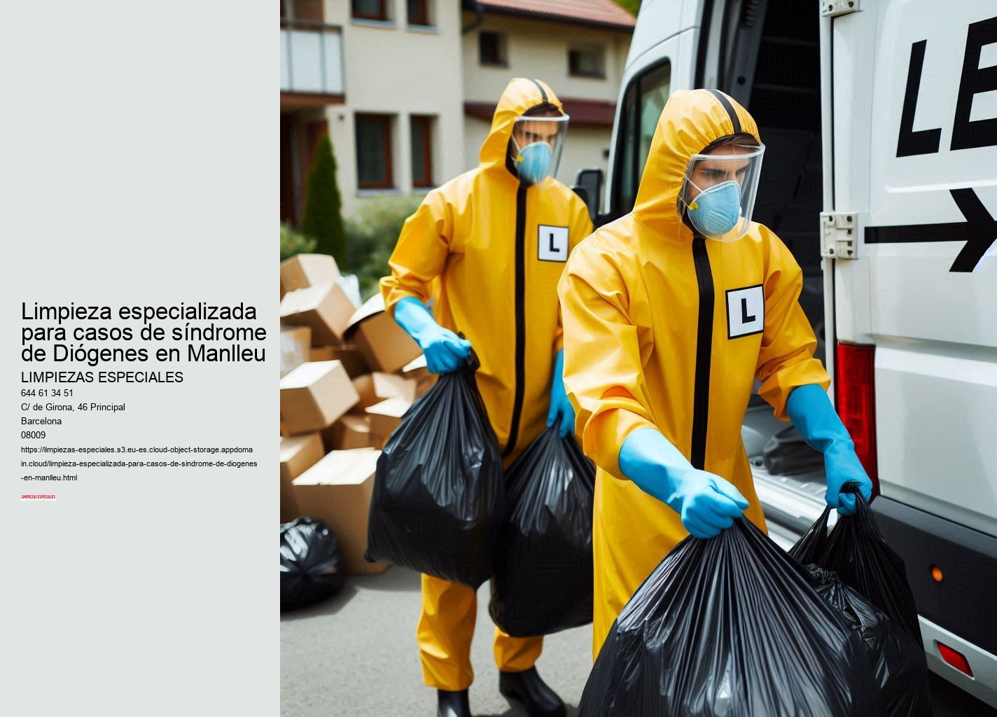 ¡No espere más! Contáctenos hoy mismo para obtener un presupuesto gratuito y sin compromiso. Garantía total en Limpieza especializada para casos de síndrome de Diógenes en Manlleu !Contacta ahora¡ Recupera la tranquilidad y seguridad de tu hogar con los servicios profesionales de Limpiezas Especiales Manlleu. Llámanos ahora y transforma tu hogar y tu vida.