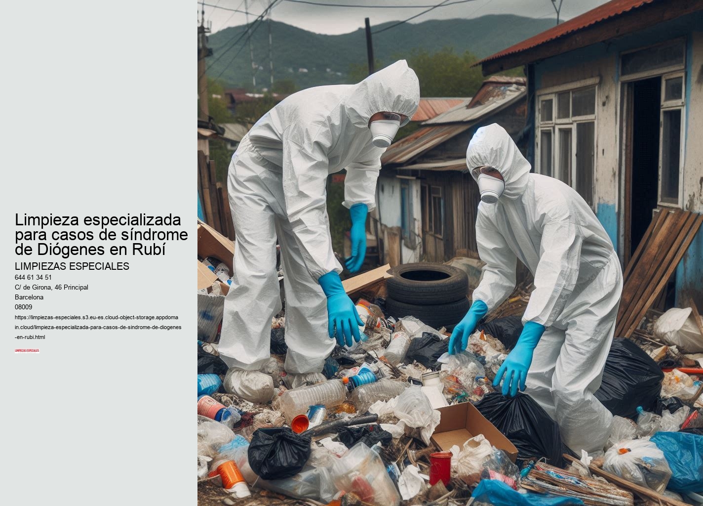 Ofrecemos consultas sin compromiso y asesoramiento sobre servicios sociales adicionales. Empresa experta en Limpieza especializada para casos de síndrome de Diógenes en Rubí Garantizado 100% Garantía total en Limpieza especializada para casos de síndrome de Diógenes en Rubí !Contacta ahora¡ Esto incluye orientación sobre recursos disponibles para apoyar a las personas afectadas.